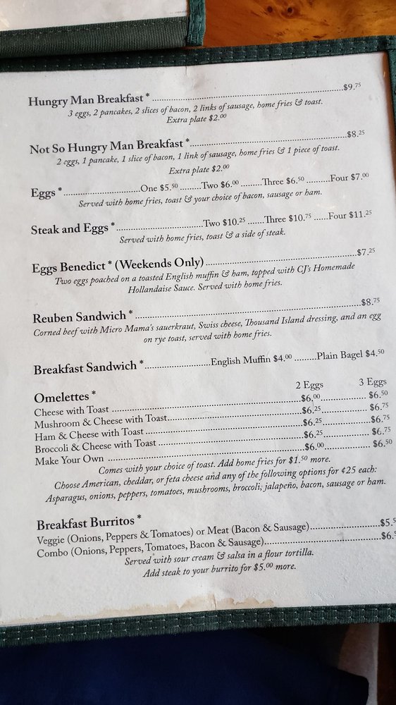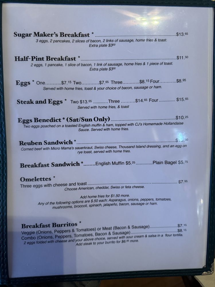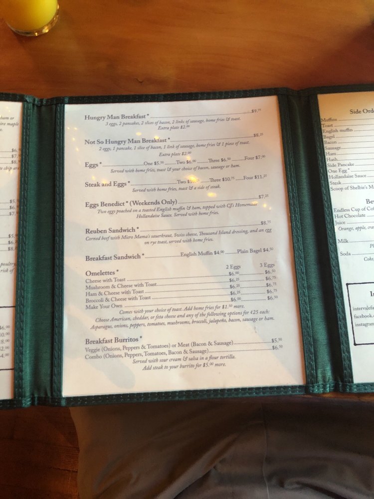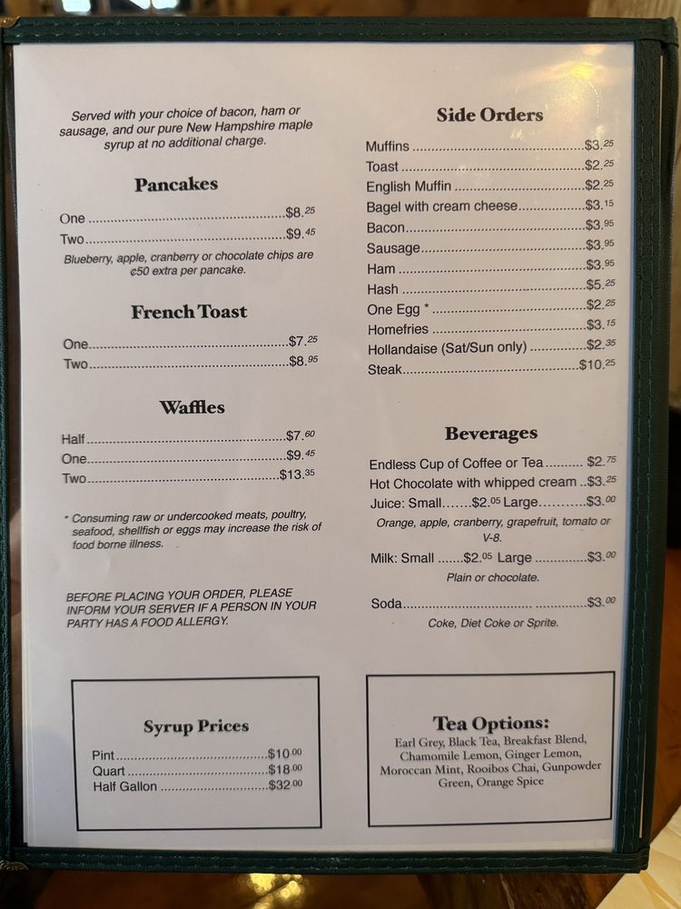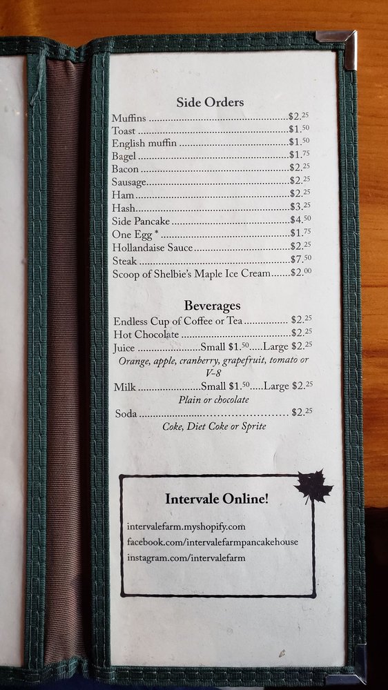 Intervale Farm Pancake House Menu